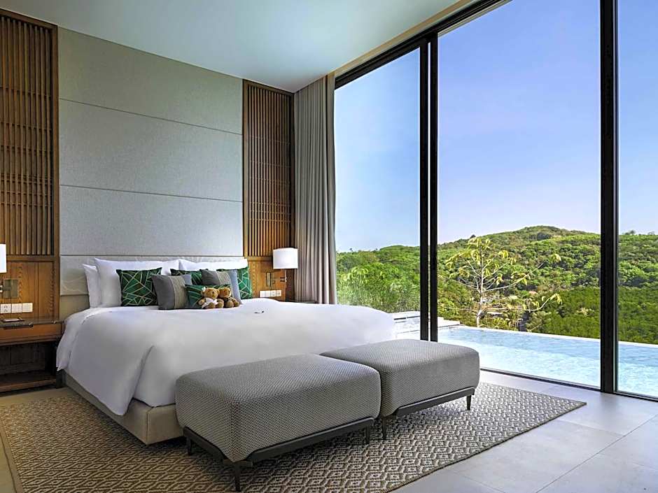 The 360 sqm, 2-story villa is architecturally designed to maximize social and private spaces. The upper level features two bedrooms and the third bedroom is on the lower level. Each bedroom features a luxurious king size bed and private en suite with twin spa baths. The 3 x 30 ft private infinity pool, expansive deck with sun loungers is surrounded by outstanding ocean views. A 24-hour personal butler is on hand to assist with all guest needs, including curating memorable in-villa private dining, floating breakfasts, spa, wellness, and fitness experiences.